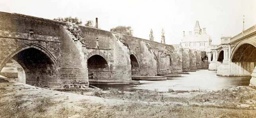 Old and new bridges pictured together in 1871 (Wikipedia)